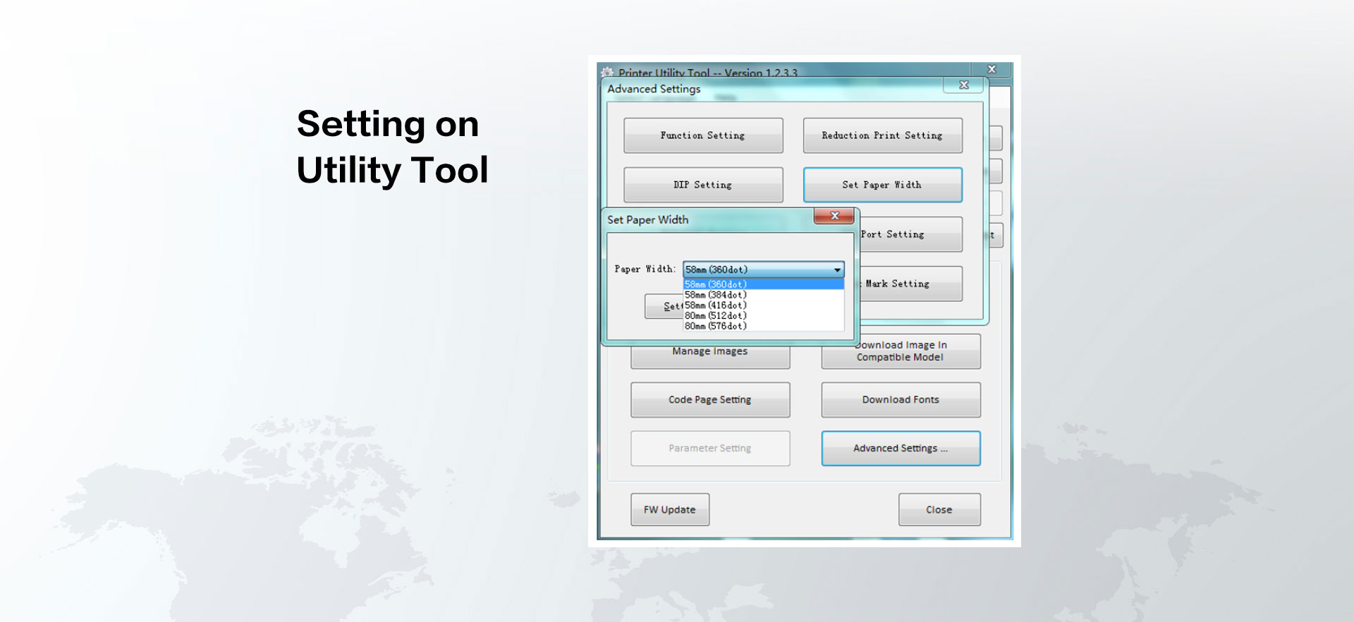 Graphics | Support bitmap printing with different density and user defined bitmap printing. (Max size of each bitmap is 40K, the total size of bitmap is 256k) | ||