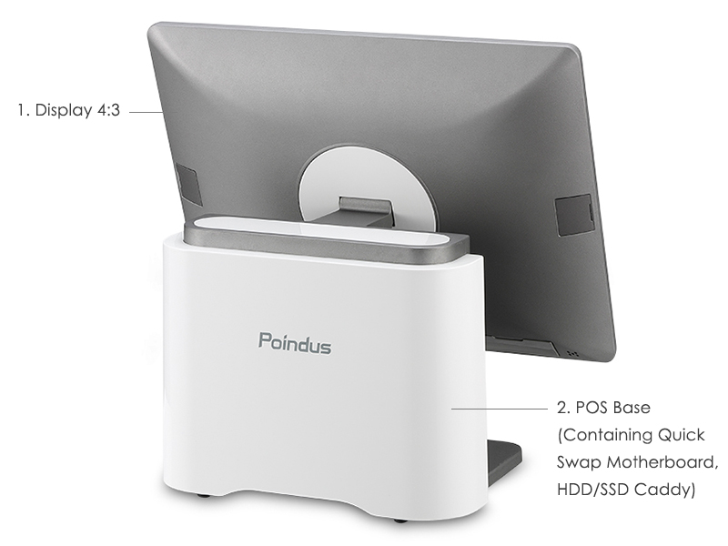 VariPOS 250 design provides quick and easy service for routine maintenance schedules, significantly reducing engineer onsite visit time. The modular design allows fast upgrade or replacement for motherboard/processor, display and SSD/HDD. The display can be easily detached from the base by thumb screw for rapid tool-less replacement. Simple Motherboard and SSD/HDD access has been implemented for easy maintenance with the quick service design